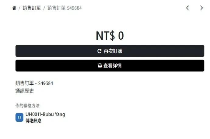 - 確認此筆訂單內容為您所需要之商品可按下"再次訂購"按鈕加入購物車重複購買。
