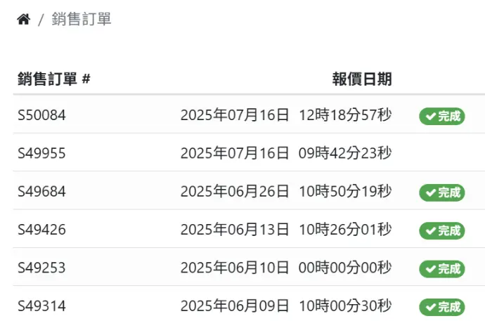 - 右側顯示"完成"之訂單。可點選左邊銷售訂單號碼,來查看詳情。
