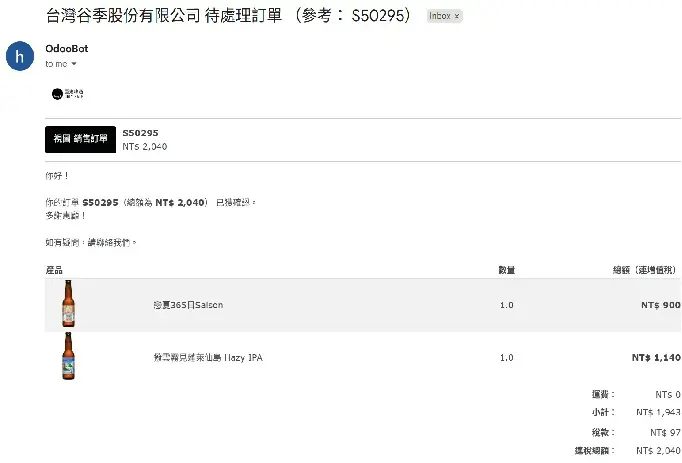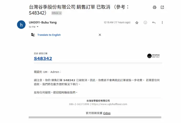 - 若訂單未依照下單,則會收到訂單取消信件。