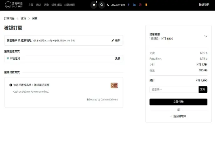 - 請確認訂單內容無誤後按下"立即付款"即可提交訂單。