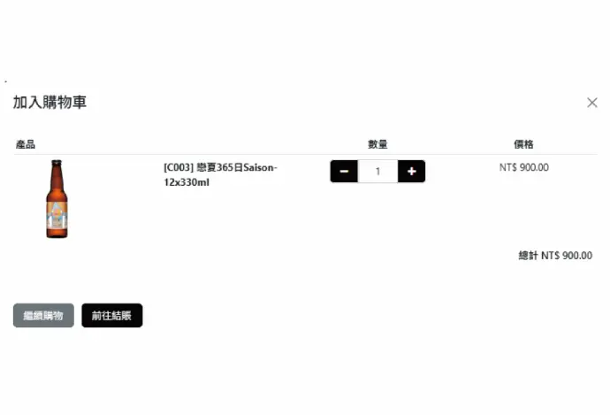 加入購物車後,如需挑選商品>按下"繼續購物",選購完成後>請按下"前往結帳"